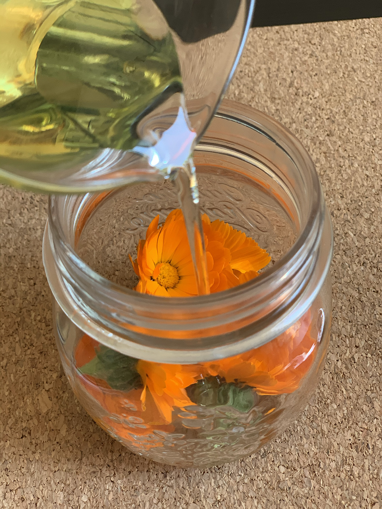 - Riempire un vaso perfettamente pulito con i fiori e l’olio vegetale